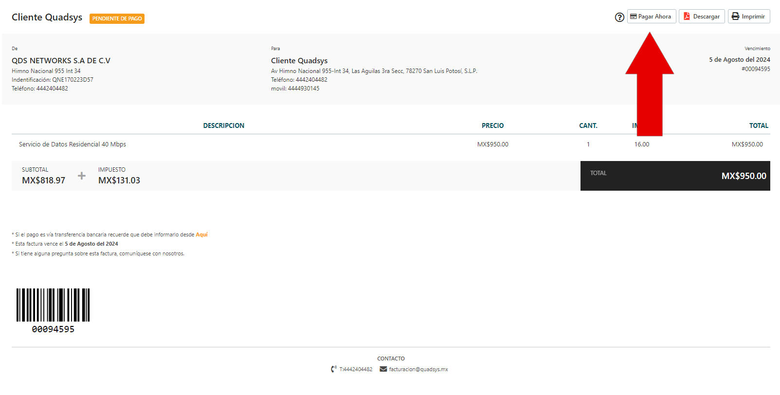 - Localice el botón «Pagar»: En la parte superior izquierda de la pantalla de la factura, encontrará el botón «Pagar». Haga clic en él para iniciar el proceso de pago.